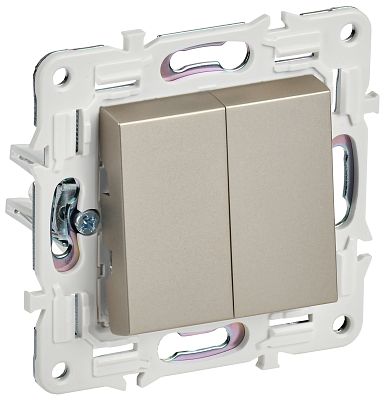 При подборе розеток, выключателей и других элементов для работы с электроэнергией учитывают не только электротехнические параметры, но и эстетику. SKANDY Выключатель 2-клавишный 10А SK-V04Sh шампань IEK (SK-V20-0-10-K37) — одна из лучших моделей в своем классе по обоим критериям. Производитель IEK сделал ставку на простую надежную конструкцию и современные материалы, которые обладают высокой устойчивостью к износу. Продукция прошла строгую проверку на безопасность и рассчитана на многолетнюю эксплуатацию в интенсивном режиме. Как официальный дистрибьютор мы готовы поставить любое количество товаров в кратчайшие сроки.