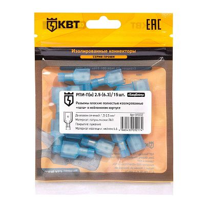Электротехническая инфраструктура на объекте может иметь разную конфигурацию, в том числе довольно сложную со множеством подключенных потребителей, однако строгие требования к безопасности неизменны. Они прописаны в отраслевых стандартах и другой нормативной документации. И зависит итоговый результат непосредственно от качества электромонтажа и используемых комплектующих. Разъем плоский полностью изолированный «папа» РПИ-П(н) 2.5-(6.3) (15 шт) КВТ (91032) — небольшая, но очень важная деталь, которая тоже отвечает за корректную работу оборудования. Устанавливается довольно просто, но с эксплуатационными нагрузками при этом справляется на отлично. Качество гарантировано многоступенчатым контролем на заводе КВТ. При заказе уточните артикул 91032 и количество позиций.