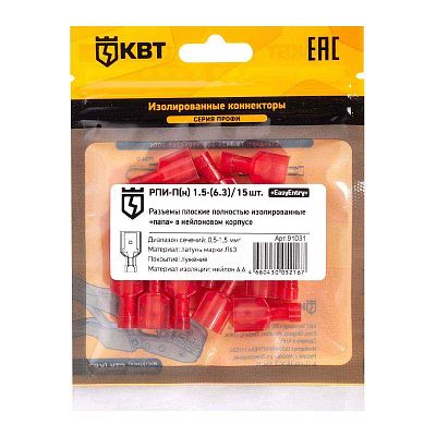 Электротехническая инфраструктура на объекте может иметь разную конфигурацию, в том числе довольно сложную со множеством подключенных потребителей, однако строгие требования к безопасности неизменны. Они прописаны в отраслевых стандартах и другой нормативной документации. И зависит итоговый результат непосредственно от качества электромонтажа и используемых комплектующих. Разъем плоский полностью изолированный «папа» РПИ-П(н) 1.5-(6.3) (15 шт) КВТ (91031) — небольшая, но очень важная деталь, которая тоже отвечает за корректную работу оборудования. Устанавливается довольно просто, но с эксплуатационными нагрузками при этом справляется на отлично. Качество гарантировано многоступенчатым контролем на заводе КВТ. При заказе уточните артикул 91031 и количество позиций.