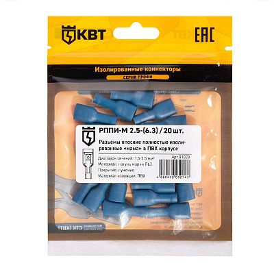 Электротехническая инфраструктура на объекте может иметь разную конфигурацию, в том числе довольно сложную со множеством подключенных потребителей, однако строгие требования к безопасности неизменны. Они прописаны в отраслевых стандартах и другой нормативной документации. И зависит итоговый результат непосредственно от качества электромонтажа и используемых комплектующих. Разъем кабельный плоский полностью изолированный «мама» РППИ-М 2.5-(6.3) (20 шт) КВТ (91029) — небольшая, но очень важная деталь, которая тоже отвечает за корректную работу оборудования. Устанавливается довольно просто, но с эксплуатационными нагрузками при этом справляется на отлично. Качество гарантировано многоступенчатым контролем на заводе КВТ. При заказе уточните артикул 91029 и количество позиций.