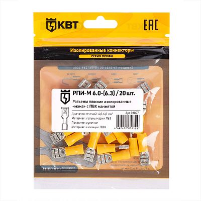 Электротехническая инфраструктура на объекте может иметь разную конфигурацию, в том числе довольно сложную со множеством подключенных потребителей, однако строгие требования к безопасности неизменны. Они прописаны в отраслевых стандартах и другой нормативной документации. И зависит итоговый результат непосредственно от качества электромонтажа и используемых комплектующих. Разъем кабельный плоский изолированный «мама» РПИ-М 6.0-(6.3) (20 шт) КВТ (91027) — небольшая, но очень важная деталь, которая тоже отвечает за корректную работу оборудования. Устанавливается довольно просто, но с эксплуатационными нагрузками при этом справляется на отлично. Качество гарантировано многоступенчатым контролем на заводе КВТ. При заказе уточните артикул 91027 и количество позиций.