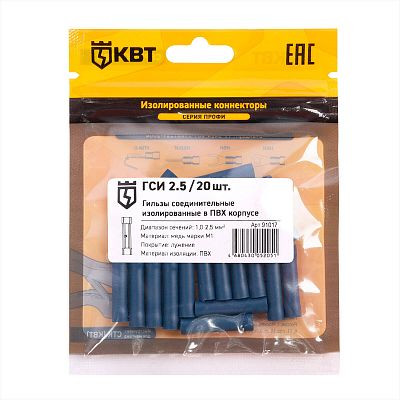 Электротехническая инфраструктура на объекте может иметь разную конфигурацию, в том числе довольно сложную со множеством подключенных потребителей, однако строгие требования к безопасности неизменны. Они прописаны в отраслевых стандартах и другой нормативной документации. И зависит итоговый результат непосредственно от качества электромонтажа и используемых комплектующих. Гильза соединительная изолированная ГСИ 2.5 (20 шт) КВТ (91017) — небольшая, но очень важная деталь, которая тоже отвечает за корректную работу оборудования. Устанавливается довольно просто, но с эксплуатационными нагрузками при этом справляется на отлично. Качество гарантировано многоступенчатым контролем на заводе КВТ. При заказе уточните артикул 91017 и количество позиций.