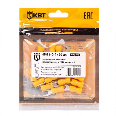 Электротехническая инфраструктура на объекте может иметь разную конфигурацию, в том числе довольно сложную со множеством подключенных потребителей, однако строгие требования к безопасности неизменны. Они прописаны в отраслевых стандартах и другой нормативной документации. И зависит итоговый результат непосредственно от качества электромонтажа и используемых комплектующих. Наконечник кабельный вилочный изолированный НВИ 6.0–4 (20 шт) КВТ (91009) — небольшая, но очень важная деталь, которая тоже отвечает за корректную работу оборудования. Устанавливается довольно просто, но с эксплуатационными нагрузками при этом справляется на отлично. Качество гарантировано многоступенчатым контролем на заводе КВТ. При заказе уточните артикул 91009 и количество позиций.