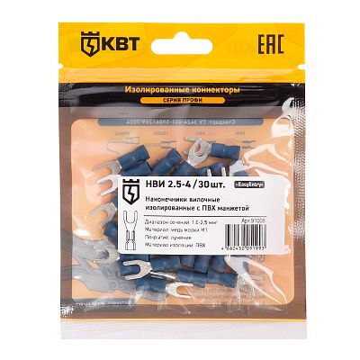 Электротехническая инфраструктура на объекте может иметь разную конфигурацию, в том числе довольно сложную со множеством подключенных потребителей, однако строгие требования к безопасности неизменны. Они прописаны в отраслевых стандартах и другой нормативной документации. И зависит итоговый результат непосредственно от качества электромонтажа и используемых комплектующих. Наконечник кабельный вилочный изолированный НВИ 2.5–4 (30 шт) КВТ (91008) — небольшая, но очень важная деталь, которая тоже отвечает за корректную работу оборудования. Устанавливается довольно просто, но с эксплуатационными нагрузками при этом справляется на отлично. Качество гарантировано многоступенчатым контролем на заводе КВТ. При заказе уточните артикул 91008 и количество позиций.