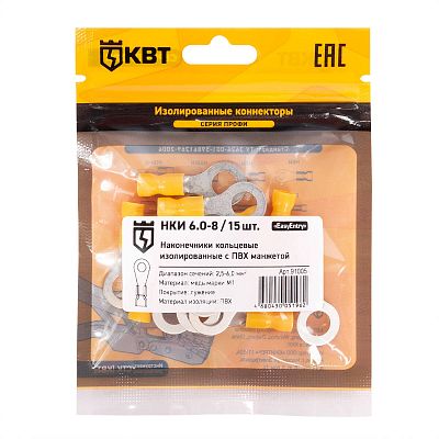 Электротехническая инфраструктура на объекте может иметь разную конфигурацию, в том числе довольно сложную со множеством подключенных потребителей, однако строгие требования к безопасности неизменны. Они прописаны в отраслевых стандартах и другой нормативной документации. И зависит итоговый результат непосредственно от качества электромонтажа и используемых комплектующих. Наконечник кабельный кольцевой изолированный НКИ 6.0–8 (15 шт) КВТ (91005) — небольшая, но очень важная деталь, которая тоже отвечает за корректную работу оборудования. Устанавливается довольно просто, но с эксплуатационными нагрузками при этом справляется на отлично. Качество гарантировано многоступенчатым контролем на заводе КВТ. При заказе уточните артикул 91005 и количество позиций.