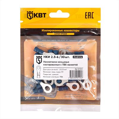 Электротехническая инфраструктура на объекте может иметь разную конфигурацию, в том числе довольно сложную со множеством подключенных потребителей, однако строгие требования к безопасности неизменны. Они прописаны в отраслевых стандартах и другой нормативной документации. И зависит итоговый результат непосредственно от качества электромонтажа и используемых комплектующих. Наконечник кабельный кольцевой изолированный НКИ 2.5–6 (30 шт) КВТ (91003) — небольшая, но очень важная деталь, которая тоже отвечает за корректную работу оборудования. Устанавливается довольно просто, но с эксплуатационными нагрузками при этом справляется на отлично. Качество гарантировано многоступенчатым контролем на заводе КВТ. При заказе уточните артикул 91003 и количество позиций.