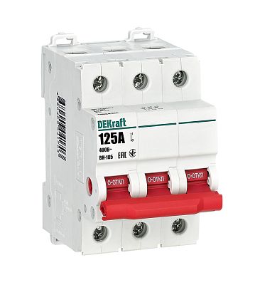 Выключатель-разъединитель 3Р 125А ВН-105 (17094DEK) — современное решение для контроля нагрузки в сети, предотвращения перегрузок и других аварийных ситуаций, способных повлиять на подключенных потребителей. Такое низковольтное оборудование рассчитано на работу при номинальном напряжении до 1000 вольт. Производитель DEKraft давно представлен на электротехническом рынке, его устройства функционируют на объектах самого разного назначения, их рекомендуют профессиональные электрики благодаря высокой надежности, безотказности и безопасности. Подтвердите заказ на любое количество артикула 17094DEK, и мы оперативно отправим его по России.