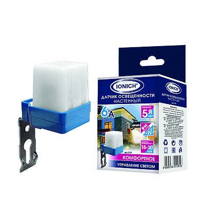 К светотехнике на любом объекте, будь то жилое помещение или коммерческая площадка, предъявляют высокие требования. Необходимо не только продумать конфигурацию всех приборов, безопасную схему подключения, суммарную мощность и нагрузку на сеть, но и учесть требования дизайна, поскольку эстетике сегодня уделяется большое внимание. Датчик освещенности, настенный, 6А, 8-30 Lux, белый (2197) — современное решение, в котором учтены все требования. За надежность отвечают материалы с большим запасом прочности. Все элементы конструкции без проблем выдерживают интенсивную эксплуатацию. Такой вдумчивый подход к деталям является визитной карточкой бренда IONICH.