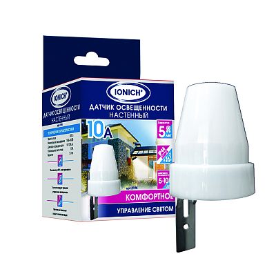 К светотехнике на любом объекте, будь то жилое помещение или коммерческая площадка, предъявляют высокие требования. Необходимо не только продумать конфигурацию всех приборов, безопасную схему подключения, суммарную мощность и нагрузку на сеть, но и учесть требования дизайна, поскольку эстетике сегодня уделяется большое внимание. Датчик освещенности, настенный, 10А, 5-100 Lux, белый (2198) — современное решение, в котором учтены все требования. За надежность отвечают материалы с большим запасом прочности. Все элементы конструкции без проблем выдерживают интенсивную эксплуатацию. Такой вдумчивый подход к деталям является визитной карточкой бренда IONICH.
