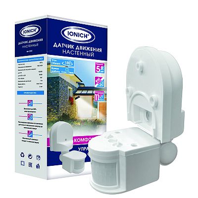 К светотехнике на любом объекте, будь то жилое помещение или коммерческая площадка, предъявляют высокие требования. Необходимо не только продумать конфигурацию всех приборов, безопасную схему подключения, суммарную мощность и нагрузку на сеть, но и учесть требования дизайна, поскольку эстетике сегодня уделяется большое внимание. Датчик движения, настенный, 11 м, 1200Вт, 7 мин, белый (2203) — современное решение, в котором учтены все требования. За надежность отвечают материалы с большим запасом прочности. Все элементы конструкции без проблем выдерживают интенсивную эксплуатацию. Такой вдумчивый подход к деталям является визитной карточкой бренда IONICH.