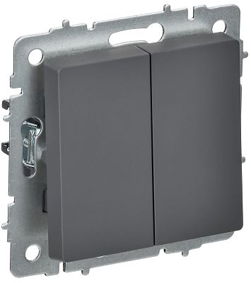 При подборе розеток, выключателей и других элементов для работы с электроэнергией учитывают не только электротехнические параметры, но и эстетику. BRITE Выключатель 2-клавишный перекрестный 10А ВС10-2-3-БрГ графит IEK (BR-V23-0-10-K53) — одна из лучших моделей в своем классе по обоим критериям. Производитель IEK сделал ставку на простую надежную конструкцию и современные материалы, которые обладают высокой устойчивостью к износу. Продукция прошла строгую проверку на безопасность и рассчитана на многолетнюю эксплуатацию в интенсивном режиме. Как официальный дистрибьютор мы готовы поставить любое количество товаров в кратчайшие сроки.