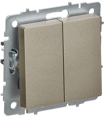 При подборе розеток, выключателей и других элементов для работы с электроэнергией учитывают не только электротехнические параметры, но и эстетику. BRITE Выключатель 2-клавишный перекрестный 10А ВС10-2-3-БрШ шампань IEK (BR-V23-0-10-K37) — одна из лучших моделей в своем классе по обоим критериям. Производитель IEK сделал ставку на простую надежную конструкцию и современные материалы, которые обладают высокой устойчивостью к износу. Продукция прошла строгую проверку на безопасность и рассчитана на многолетнюю эксплуатацию в интенсивном режиме. Как официальный дистрибьютор мы готовы поставить любое количество товаров в кратчайшие сроки.