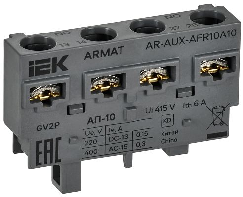 ARMAT Аварийный контакт поперечный АП-10 GV2P IEK (AR-AUX-AFR10A10) — современное решение для контроля нагрузки в сети, предотвращения перегрузок и других аварийных ситуаций, способных повлиять на подключенных потребителей. Такое низковольтное оборудование рассчитано на работу при номинальном напряжении до 1000 вольт. Производитель IEK давно представлен на электротехническом рынке, его устройства функционируют на объектах самого разного назначения, их рекомендуют профессиональные электрики благодаря высокой надежности, безотказности и безопасности. Подтвердите заказ на любое количество артикула AR-AUX-AFR10A10, и мы оперативно отправим его по России.