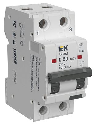 ARMAT Автоматический выключатель дифференциального тока B10N 2P C20 30мА тип A IEK (AR-B10N-2-C020A030) — современное решение для контроля нагрузки в сети, предотвращения перегрузок и других аварийных ситуаций, способных повлиять на подключенных потребителей. Такое низковольтное оборудование рассчитано на работу при номинальном напряжении до 1000 вольт. Производитель IEK давно представлен на электротехническом рынке, его устройства функционируют на объектах самого разного назначения, их рекомендуют профессиональные электрики благодаря высокой надежности, безотказности и безопасности. Подтвердите заказ на любое количество артикула AR-B10N-2-C020A030, и мы оперативно отправим его по России.