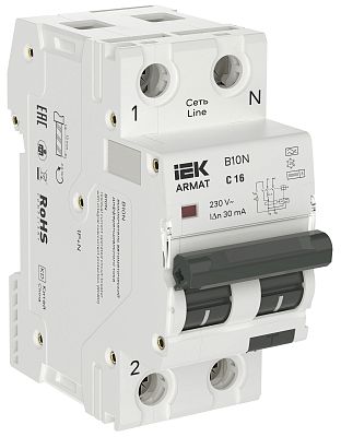 ARMAT Автоматический выключатель дифференциального тока B10N 1P+NP C16 30мА тип A (36мм) IEK (AR-B10N-1N-C016A030) — современное решение для контроля нагрузки в сети, предотвращения перегрузок и других аварийных ситуаций, способных повлиять на подключенных потребителей. Такое низковольтное оборудование рассчитано на работу при номинальном напряжении до 1000 вольт. Производитель IEK давно представлен на электротехническом рынке, его устройства функционируют на объектах самого разного назначения, их рекомендуют профессиональные электрики благодаря высокой надежности, безотказности и безопасности. Подтвердите заказ на любое количество артикула AR-B10N-1N-C016A030, и мы оперативно отправим его по России.