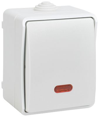 При подборе розеток, выключателей и других элементов для работы с электроэнергией учитывают не только электротехнические параметры, но и эстетику. FORS Выключатель 1-клавишный проходной с индикацией для открытой установки 10А IP54 ВС20-1-1-ФБ белый IEK (EVS11-K01-10-54-DC) — одна из лучших моделей в своем классе по обоим критериям. Производитель IEK сделал ставку на простую надежную конструкцию и современные материалы, которые обладают высокой устойчивостью к износу. Продукция прошла строгую проверку на безопасность и рассчитана на многолетнюю эксплуатацию в интенсивном режиме. Как официальный дистрибьютор мы готовы поставить любое количество товаров в кратчайшие сроки.