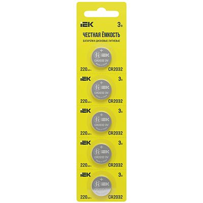 Безопасность, простота использования, долгий срок службы — три базовых требования к элементам питания и зарядным устройствам. Батарейка дисковая литиевая CR2032 (5шт/отрывной блистер) IEK (ABT-CR2032-OP-D05) по этим параметрам в топе. Отличается высоким эксплуатационным ресурсом и стабильной работой под нагрузкой. Надежность продукции IEK подтверждена в ходе многочисленных испытаний и уже неоднократно доказана на практике профессионалами и рядовыми покупателями. Вы можете сделать заказ на любое количество артикула ABT-CR2032-OP-D05. На нашем складе всегда большой запас, поскольку мы работаем с производителем на правах официального дистрибьютора.