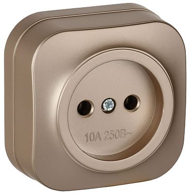 При подборе розеток, выключателей и других элементов для работы с электроэнергией учитывают не только электротехнические параметры, но и эстетику. GLORY Розетка 1-местная для открытой установки без заземления без защитных шторок 10А РС20-2-ХШм шампань матовый IEK (ERH10-K37M-10) — одна из лучших моделей в своем классе по обоим критериям. Производитель IEK сделал ставку на простую надежную конструкцию и современные материалы, которые обладают высокой устойчивостью к износу. Продукция прошла строгую проверку на безопасность и рассчитана на многолетнюю эксплуатацию в интенсивном режиме. Как официальный дистрибьютор мы готовы поставить любое количество товаров в кратчайшие сроки.