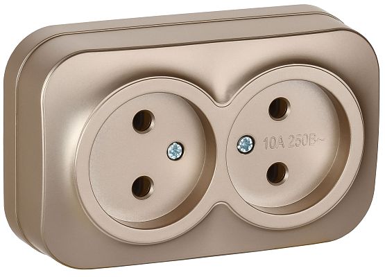 При подборе розеток, выключателей и других элементов для работы с электроэнергией учитывают не только электротехнические параметры, но и эстетику. GLORY Розетка 2-местная для открытой установки без заземления без защитных шторок 10А РС22-2-ХШм шампань матовый IEK (ERH20-K37M-10) — одна из лучших моделей в своем классе по обоим критериям. Производитель IEK сделал ставку на простую надежную конструкцию и современные материалы, которые обладают высокой устойчивостью к износу. Продукция прошла строгую проверку на безопасность и рассчитана на многолетнюю эксплуатацию в интенсивном режиме. Как официальный дистрибьютор мы готовы поставить любое количество товаров в кратчайшие сроки.