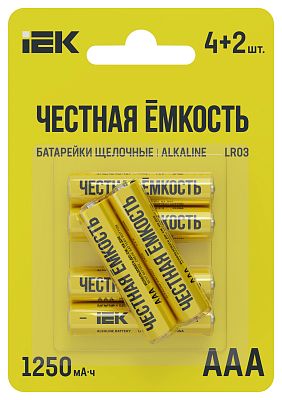 Безопасность, простота использования, долгий срок службы — три базовых требования к элементам питания и зарядным устройствам. Батарейка щелочная Alkaline LR03/AAA (4+2шт/блистер) ПРОМО IEK (ABT-LR03-OP-L04-02) по этим параметрам в топе. Отличается высоким эксплуатационным ресурсом и стабильной работой под нагрузкой. Надежность продукции IEK подтверждена в ходе многочисленных испытаний и уже неоднократно доказана на практике профессионалами и рядовыми покупателями. Вы можете сделать заказ на любое количество артикула ABT-LR03-OP-L04-02. На нашем складе всегда большой запас, поскольку мы работаем с производителем на правах официального дистрибьютора.
