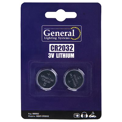 Безопасность, простота использования, долгий срок службы — три базовых требования к элементам питания и зарядным устройствам. Батарейка General GBAT-CR2032 кнопочная литиевая 2шт в блист (800562) (2/40/640) (800562) по этим параметрам в топе. Отличается высоким эксплуатационным ресурсом и стабильной работой под нагрузкой. Надежность продукции General Lighting Systems подтверждена в ходе многочисленных испытаний и уже неоднократно доказана на практике профессионалами и рядовыми покупателями. Вы можете сделать заказ на любое количество артикула 800562. На нашем складе всегда большой запас, поскольку мы работаем с производителем на правах официального дистрибьютора.