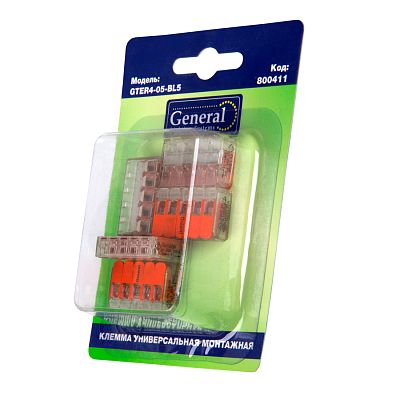Электротехническая инфраструктура на объекте может иметь разную конфигурацию, в том числе довольно сложную со множеством подключенных потребителей, однако строгие требования к безопасности неизменны. Они прописаны в отраслевых стандартах и другой нормативной документации. И зависит итоговый результат непосредственно от качества электромонтажа и используемых комплектующих. Клемма универсальная 221-415 GTER4-05-BL5 5-пров., прозрачная компактная, блистер 5шт General (800411) — небольшая, но очень важная деталь, которая тоже отвечает за корректную работу оборудования. Устанавливается довольно просто, но с эксплуатационными нагрузками при этом справляется на отлично. Качество гарантировано многоступенчатым контролем на заводе General Lighting Systems. При заказе уточните артикул 800411 и количество позиций.