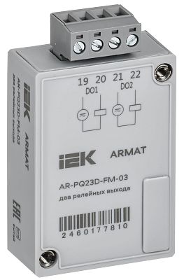 ARMAT Модуль анализатора качества электроэнергии 2 релейных выхода IEK (AR-PQ23D-FM-03) — современное решение для контроля нагрузки в сети, предотвращения перегрузок и других аварийных ситуаций, способных повлиять на подключенных потребителей. Такое низковольтное оборудование рассчитано на работу при номинальном напряжении до 1000 вольт. Производитель IEK давно представлен на электротехническом рынке, его устройства функционируют на объектах самого разного назначения, их рекомендуют профессиональные электрики благодаря высокой надежности, безотказности и безопасности. Подтвердите заказ на любое количество артикула AR-PQ23D-FM-03, и мы оперативно отправим его по России.