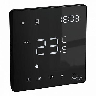 При подборе розеток, выключателей и других элементов для работы с электроэнергией учитывают не только электротехнические параметры, но и эстетику. ARTGALLERY ТЕРМОСТАТ программируемый с Wi-Fi для электрического теплого пола, 16 А, моноблочный, ЧЕРНЫЙ (GAL001038) — одна из лучших моделей в своем классе по обоим критериям. Производитель Systeme Electric (ранее Schneider Electric) сделал ставку на простую надежную конструкцию и современные материалы, которые обладают высокой устойчивостью к износу. Продукция прошла строгую проверку на безопасность и рассчитана на многолетнюю эксплуатацию в интенсивном режиме. Как официальный дистрибьютор мы готовы поставить любое количество товаров в кратчайшие сроки.