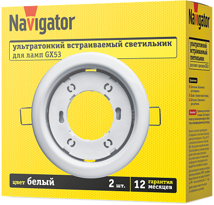 К светотехнике на любом объекте, будь то жилое помещение или коммерческая площадка, предъявляют высокие требования. Необходимо не только продумать конфигурацию всех приборов, безопасную схему подключения, суммарную мощность и нагрузку на сеть, но и учесть требования дизайна, поскольку эстетике сегодня уделяется большое внимание. Светильник Navigator 95 460 NGX-R1-001-GX53-PACK2(Белый 2шт/уп)) (95460) — современное решение, в котором учтены все требования. За надежность отвечают материалы с большим запасом прочности. Все элементы конструкции без проблем выдерживают интенсивную эксплуатацию. Такой вдумчивый подход к деталям является визитной карточкой бренда Navigator.