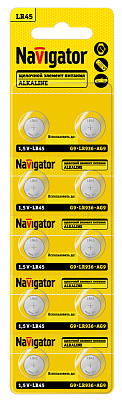 Безопасность, простота использования, долгий срок службы — три базовых требования к элементам питания и зарядным устройствам. Элемент питания Navigator 95 670 NBT-13 (LR45, AG9, LR936, BP10) (95670) по этим параметрам в топе. Отличается высоким эксплуатационным ресурсом и стабильной работой под нагрузкой. Надежность продукции Navigator подтверждена в ходе многочисленных испытаний и уже неоднократно доказана на практике профессионалами и рядовыми покупателями. Вы можете сделать заказ на любое количество артикула 95670. На нашем складе всегда большой запас, поскольку мы работаем с производителем на правах официального дистрибьютора.