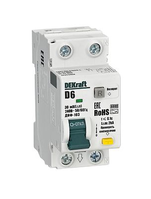 АВДТ 1P+N 6А 30мА AC х-ка D ДИФ-103 6кА нов. (16453DEK) — современное решение для контроля нагрузки в сети, предотвращения перегрузок и других аварийных ситуаций, способных повлиять на подключенных потребителей. Такое низковольтное оборудование рассчитано на работу при номинальном напряжении до 1000 вольт. Производитель DEKraft давно представлен на электротехническом рынке, его устройства функционируют на объектах самого разного назначения, их рекомендуют профессиональные электрики благодаря высокой надежности, безотказности и безопасности. Подтвердите заказ на любое количество артикула 16453DEK, и мы оперативно отправим его по России.