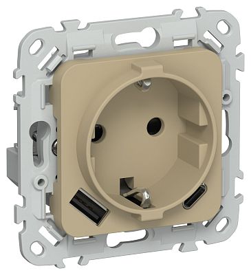 При подборе розеток, выключателей и других элементов для работы с электроэнергией учитывают не только электротехнические параметры, но и эстетику. FLITE Розетка 1-местная с заземлением с защитными шторками 16А с USB A+C 20Вт безвинтовое крепление РСЮшс11-1-ФлХ хаки IEK (FI-R14-16-1-U22-020-K59) — одна из лучших моделей в своем классе по обоим критериям. Производитель IEK сделал ставку на простую надежную конструкцию и современные материалы, которые обладают высокой устойчивостью к износу. Продукция прошла строгую проверку на безопасность и рассчитана на многолетнюю эксплуатацию в интенсивном режиме. Как официальный дистрибьютор мы готовы поставить любое количество товаров в кратчайшие сроки.