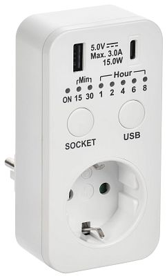 РТЭ-4 Розетка-таймер электронный с USB A+C 15мин-8ч 16А IP20 белый IEK (ERT12-1-16-O-15-2-20-K01) — современное решение для контроля нагрузки в сети, предотвращения перегрузок и других аварийных ситуаций, способных повлиять на подключенных потребителей. Такое низковольтное оборудование рассчитано на работу при номинальном напряжении до 1000 вольт. Производитель IEK давно представлен на электротехническом рынке, его устройства функционируют на объектах самого разного назначения, их рекомендуют профессиональные электрики благодаря высокой надежности, безотказности и безопасности. Подтвердите заказ на любое количество артикула ERT12-1-16-O-15-2-20-K01, и мы оперативно отправим его по России.