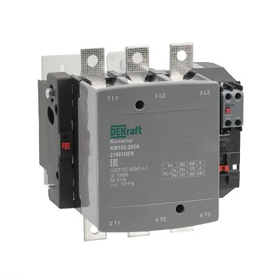 Контактор 265А 220В_АС АС3_ АС4 1НО+1НЗ КМ-102 (21961DEK) — современное решение для контроля нагрузки в сети, предотвращения перегрузок и других аварийных ситуаций, способных повлиять на подключенных потребителей. Такое низковольтное оборудование рассчитано на работу при номинальном напряжении до 1000 вольт. Производитель DEKraft давно представлен на электротехническом рынке, его устройства функционируют на объектах самого разного назначения, их рекомендуют профессиональные электрики благодаря высокой надежности, безотказности и безопасности. Подтвердите заказ на любое количество артикула 21961DEK, и мы оперативно отправим его по России.