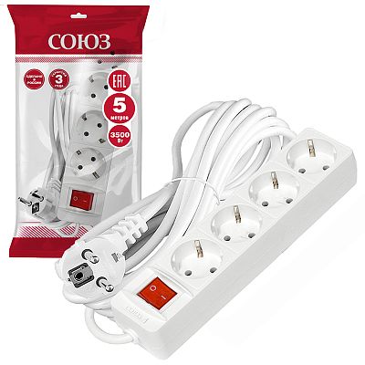 При подборе розеток, выключателей и других элементов для работы с электроэнергией учитывают не только электротехнические параметры, но и эстетику. Удлинитель быт. Союз 3500 Вт (с/з выкл.) 4гн. ПВС 5м (2794) — одна из лучших моделей в своем классе по обоим критериям. Производитель Союз сделал ставку на простую надежную конструкцию и современные материалы, которые обладают высокой устойчивостью к износу. Продукция прошла строгую проверку на безопасность и рассчитана на многолетнюю эксплуатацию в интенсивном режиме. Как официальный дистрибьютор мы готовы поставить любое количество товаров в кратчайшие сроки.