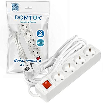 При подборе розеток, выключателей и других элементов для работы с электроэнергией учитывают не только электротехнические параметры, но и эстетику. Удлинитель бытовой DOMTOK 3500 Вт (с/з выкл.) 4гн. ПВС 3м (2499) — одна из лучших моделей в своем классе по обоим критериям. Производитель DOMTOK сделал ставку на простую надежную конструкцию и современные материалы, которые обладают высокой устойчивостью к износу. Продукция прошла строгую проверку на безопасность и рассчитана на многолетнюю эксплуатацию в интенсивном режиме. Как официальный дистрибьютор мы готовы поставить любое количество товаров в кратчайшие сроки.