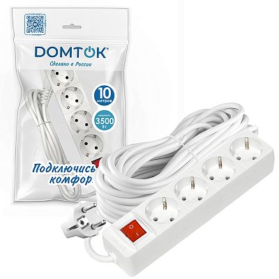 При подборе розеток, выключателей и других элементов для работы с электроэнергией учитывают не только электротехнические параметры, но и эстетику. Удлинитель бытовой DOMTOK 3500 Вт (с/з выкл.) 4гн. ПВС 10м (2405) — одна из лучших моделей в своем классе по обоим критериям. Производитель DOMTOK сделал ставку на простую надежную конструкцию и современные материалы, которые обладают высокой устойчивостью к износу. Продукция прошла строгую проверку на безопасность и рассчитана на многолетнюю эксплуатацию в интенсивном режиме. Как официальный дистрибьютор мы готовы поставить любое количество товаров в кратчайшие сроки.