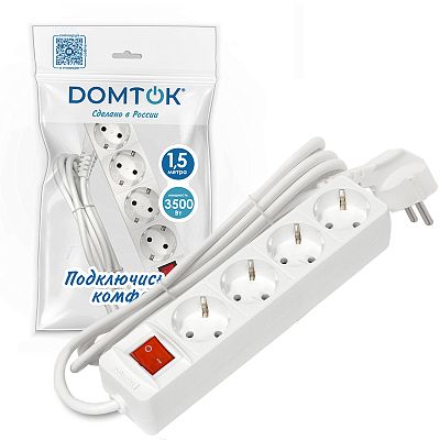 При подборе розеток, выключателей и других элементов для работы с электроэнергией учитывают не только электротехнические параметры, но и эстетику. Удлинитель бытовой DOMTOK 3500 Вт (с/з выкл.) 4гн. ПВС 1,5м (2374) — одна из лучших моделей в своем классе по обоим критериям. Производитель DOMTOK сделал ставку на простую надежную конструкцию и современные материалы, которые обладают высокой устойчивостью к износу. Продукция прошла строгую проверку на безопасность и рассчитана на многолетнюю эксплуатацию в интенсивном режиме. Как официальный дистрибьютор мы готовы поставить любое количество товаров в кратчайшие сроки.