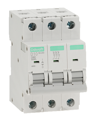 Основное назначение автоматического выключателя — это защита от возможной перегрузки и короткого замыкания. Покупка Автоматический выключатель 3P 10A х-ка D ВА-203 15кА DEKraft (13533DEK) обеспечит надежную защиту электрооборудования от поломок из-за перегрузок и скачков напряжения. Просим обращать внимание на характеристики DEKraft.