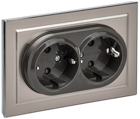 При подборе розеток, выключателей и других элементов для работы с электроэнергией учитывают не только электротехнические параметры, но и эстетику. BRITE Розетка 2-местная с заземлением с защитными шторками 16А в сборе РСш12-3-БрГН металл хром/никель IEK (BR-R24-16-M-K23-F) — одна из лучших моделей в своем классе по обоим критериям. Производитель IEK сделал ставку на простую надежную конструкцию и современные материалы, которые обладают высокой устойчивостью к износу. Продукция прошла строгую проверку на безопасность и рассчитана на многолетнюю эксплуатацию в интенсивном режиме. Как официальный дистрибьютор мы готовы поставить любое количество товаров в кратчайшие сроки.