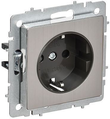 При подборе розеток, выключателей и других элементов для работы с электроэнергией учитывают не только электротехнические параметры, но и эстетику. BRITE Розетка 1-местная с заземлением с защитными шторками 16А РС14-1-0-БрГН металл хром/никель IEK (BR-R14-16-M-K23) — одна из лучших моделей в своем классе по обоим критериям. Производитель IEK сделал ставку на простую надежную конструкцию и современные материалы, которые обладают высокой устойчивостью к износу. Продукция прошла строгую проверку на безопасность и рассчитана на многолетнюю эксплуатацию в интенсивном режиме. Как официальный дистрибьютор мы готовы поставить любое количество товаров в кратчайшие сроки.